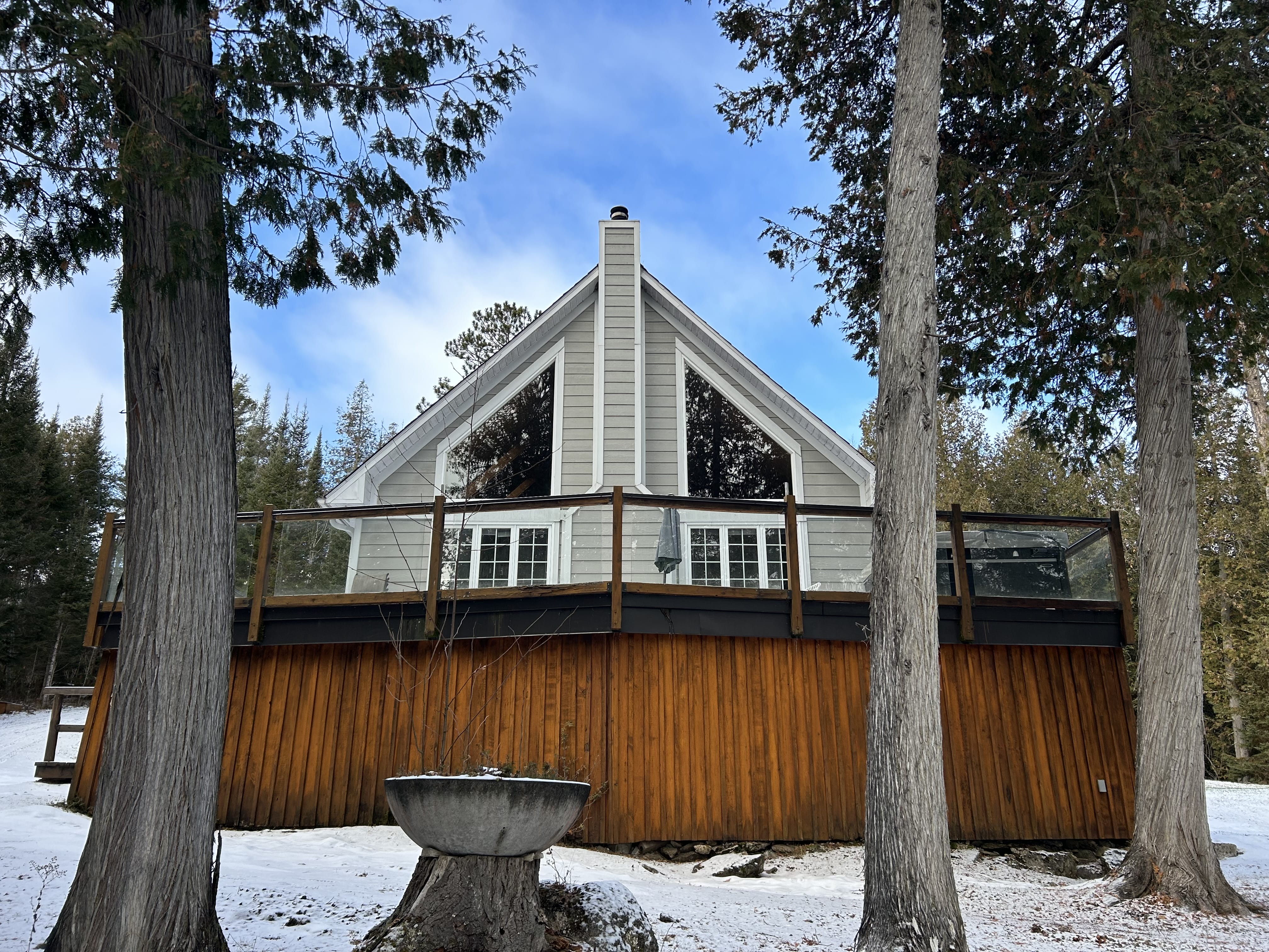 Admirez la splendeur du lac 31 Milles et de la Baie McKenzie depuis le chalet Des Pins. Ce pavillon privé, situé directement sur le bord de l’eau, dispose d’un grand quai flottant pouvant accueillir plusieurs bateaux. Inspiré d’un style champêtre et entouré de majestueux pins, le chalet offre une immense terrasse avec une vue imprenable sur le lac, où vous pourrez également profiter d’un spa privé pour vous détendre en admirant le panorama — idéal pour des moments inoubliables.